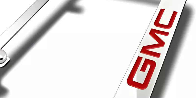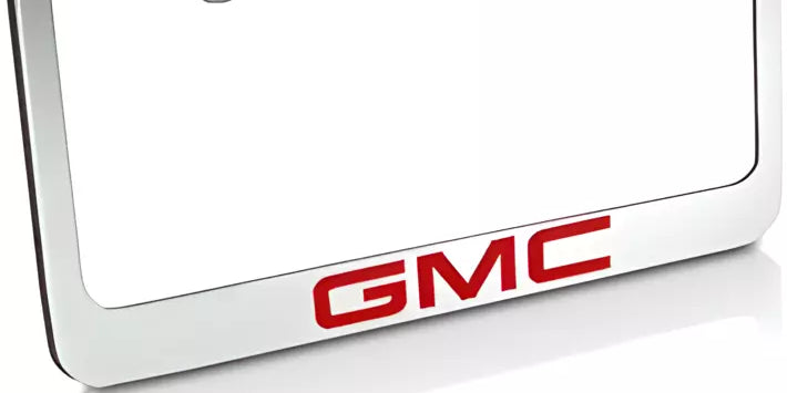 GMC Red Logo Premium Solid Chrome Brass License Plate Frame Official Licensed