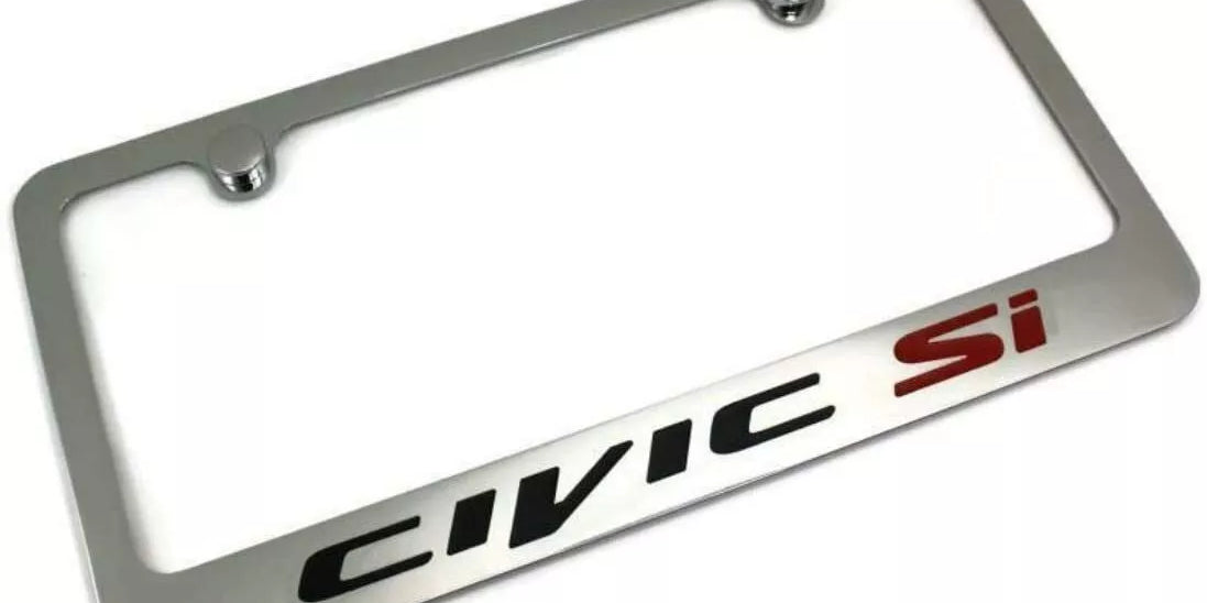 Honda Civic Si Logo Chrome Solid Brass License Plate Frame Official Licensed