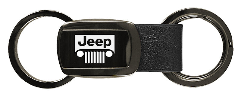 Jeep Grill Leather Tri-Ring Key Chain Fob - Gun Metal - Official Licensed