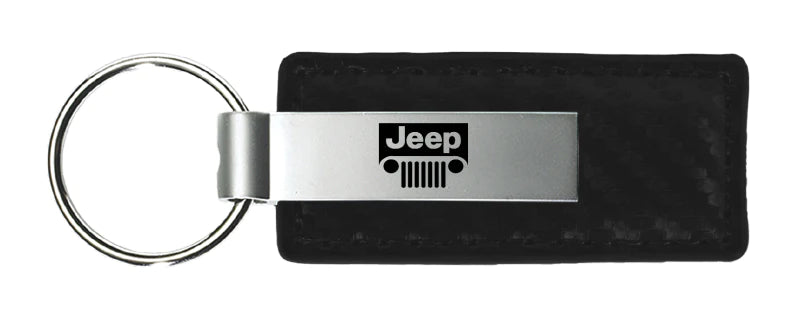 Jeep Grill Carbon Fiber Leather Key Chain Fob - Official Licensed