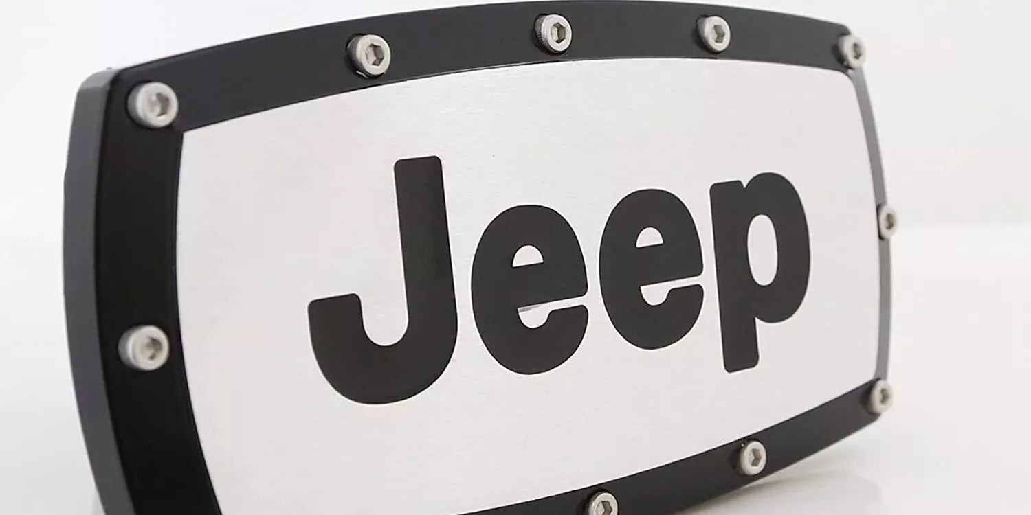 Jeep Logo Engraved Emblem Black Aluminum Tow Hitch Cover Official Licensed