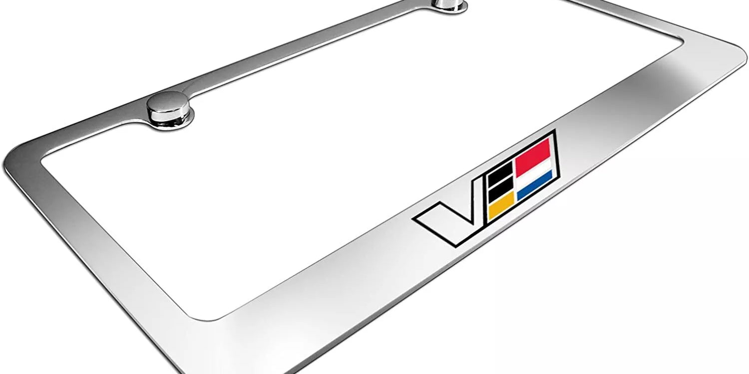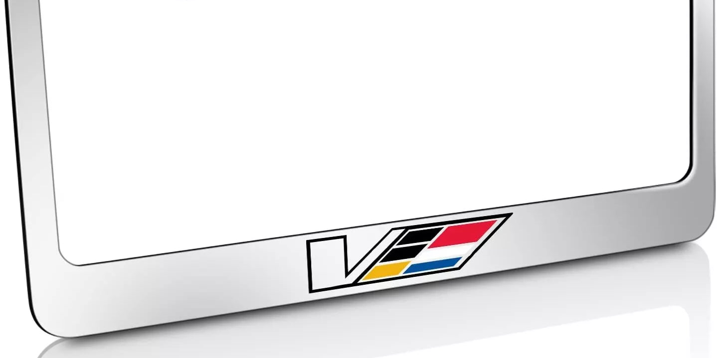 Cadillac V Logo Steel Wide Body License Plate Frame - Laser Etched - Official Licensed