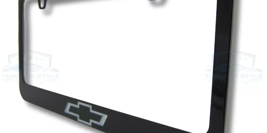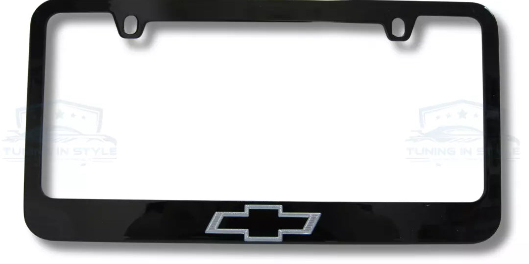 Chevrolet Bowtie Engraved Logo Black Zinc License Plate Frame Official Licensed