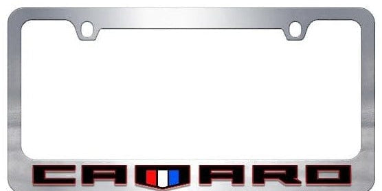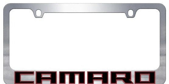 Chevrolet Camaro License Plate Frame - Chrome Icon Frames - Camaro Red Word