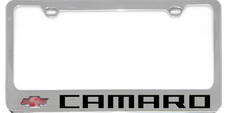 Chevrolet Camaro License Plate Frame - Chrome Icon Frames - Camaro Logo Word