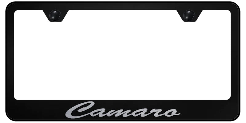 Chevrolet Camaro Engraved Logo Black Zinc License Plate Frame Official Licensed