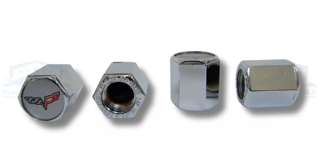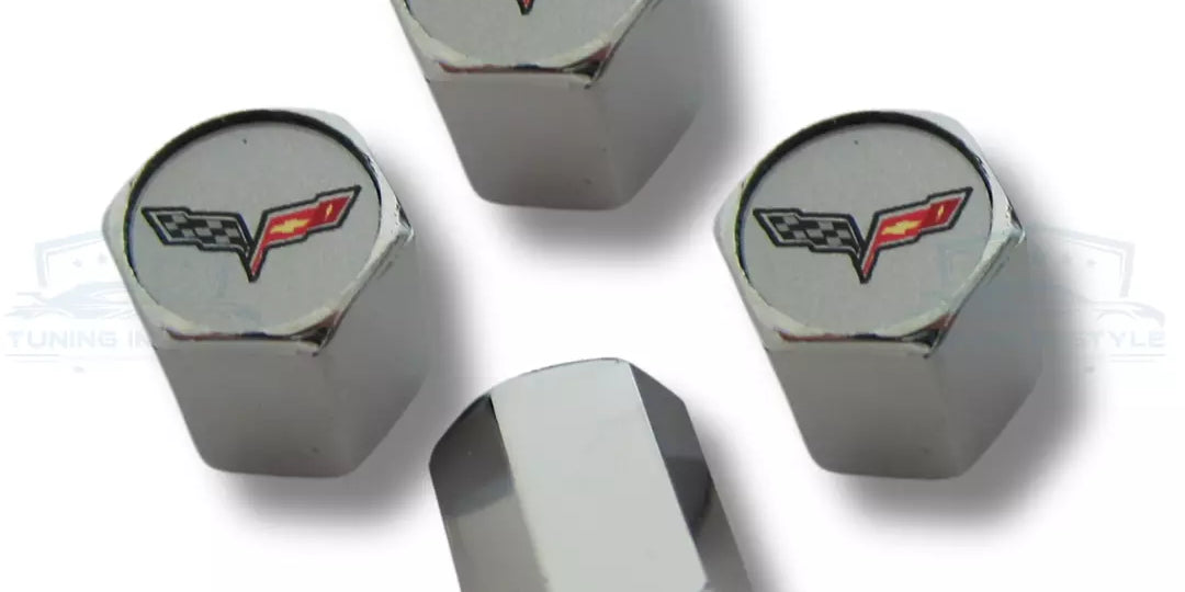 Chevrolet Corvette C6 Flag Logo ABS Chrome Tire Stem Valve Caps Official License
