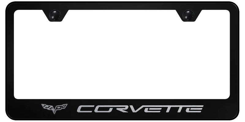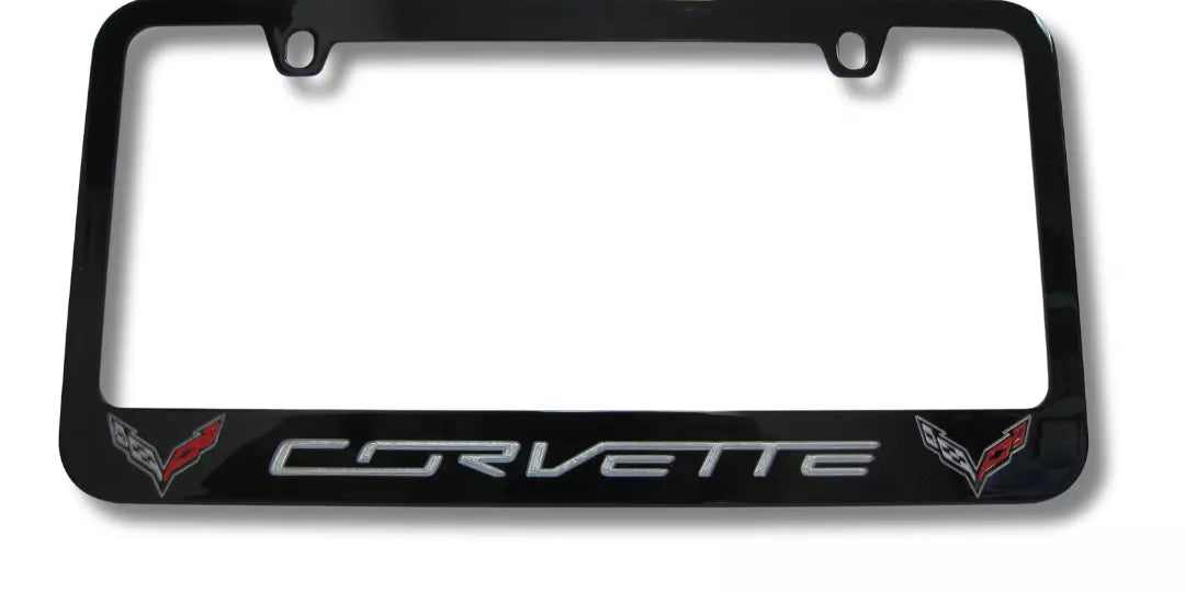 Chevrolet Corvette C6 Dual Logo Black License Plate Frame Official Licensed