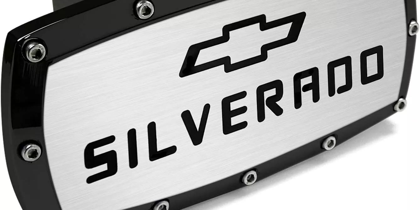 Chevrolet Silverado Engraved Black Aluminum Tow Hitch Cover Official Licensed
