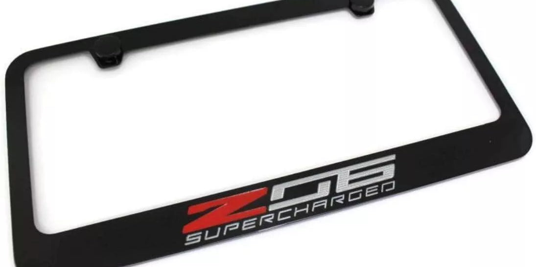 Chevrolet Z06 Logo Black Zinc Metal License Plate Frame Official Licensed