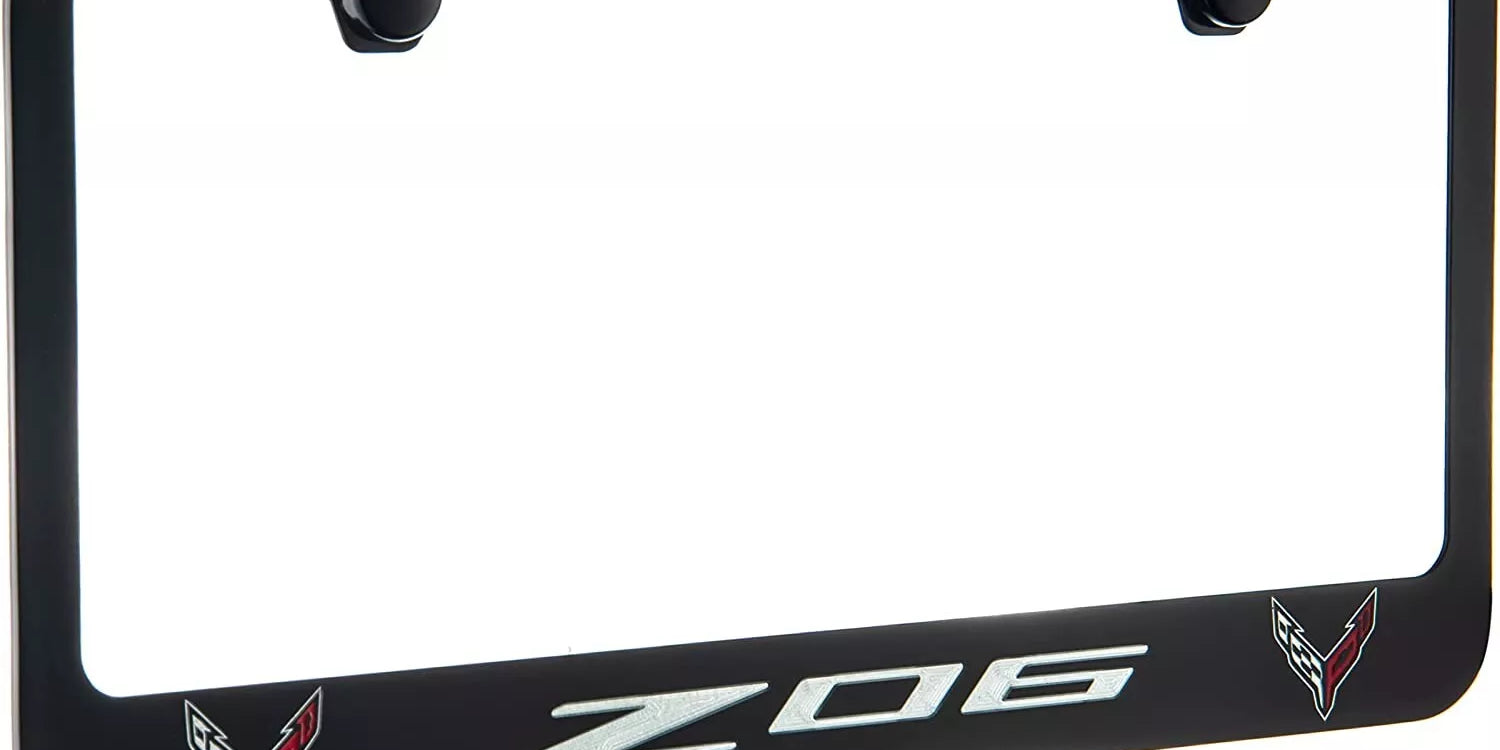 Corvette C8 Z06 2 Logo Black License Plate Frame Official Licensed