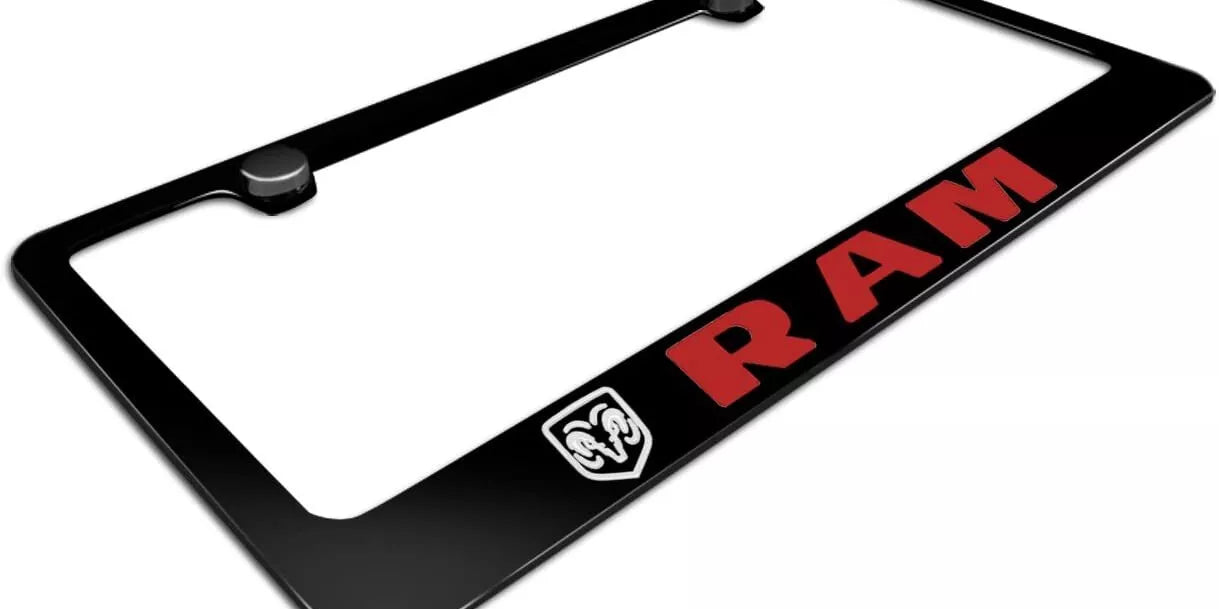 Dodge RAM Logo Black Zinc Metal License Plate Frame Official Licensed