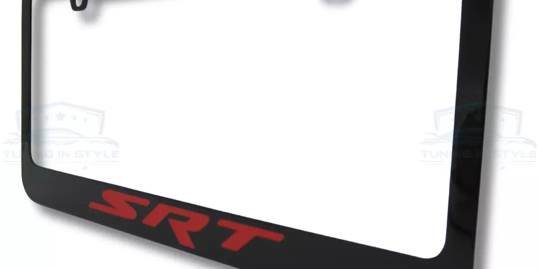 Dodge SRT Engraved Red Logo Black Zinc License Plate Frame Official Licensed