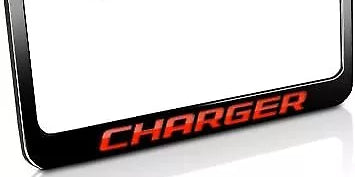 Dodge Red Charger Logo Black Zinc Metal License Plate Frame Official Licensed