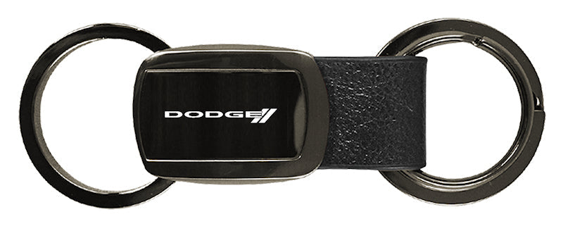 Dodge Stripe Leather Tri-Ring Key Chain Fob - Gun Metal - Official Licensed