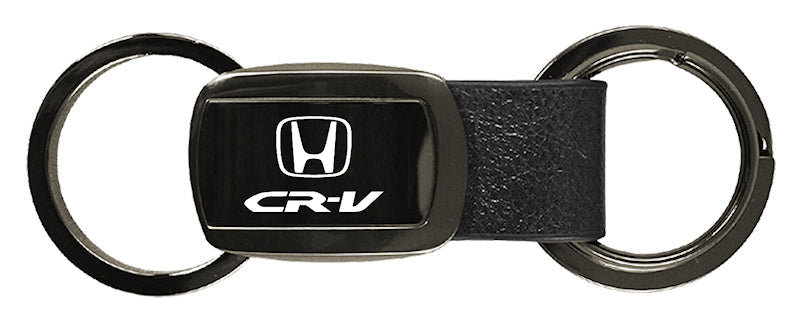 Honda CR-V Leather Tri-Ring Key Chain Fob - Gun Metal - Official Licensed