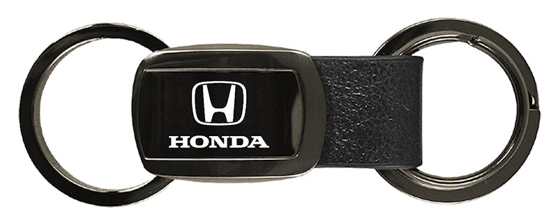 Honda Leather Tri-Ring Key Chain Fob - Gun Metal - Official Licensed