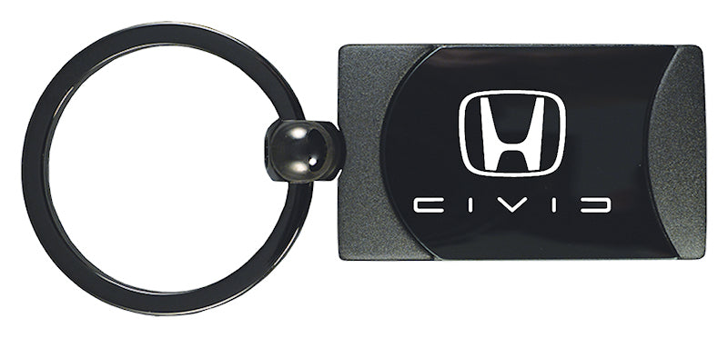 Honda Civic Two-Tone Rectangular Key Chain Fob - Gun Metal - Official Licensed