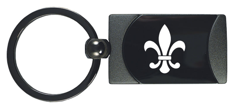 Fleur-De-Lis Two-Tone Rectangular Key Chain Fob - Gun Metal - Official Licensed