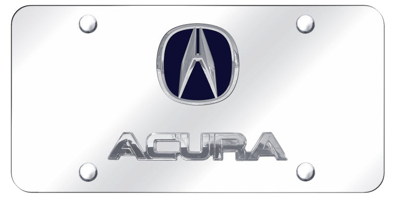 Dual Acura (Blue Fill) License Plate - Chrome on Mirrored - Official Licensed