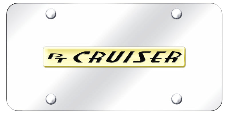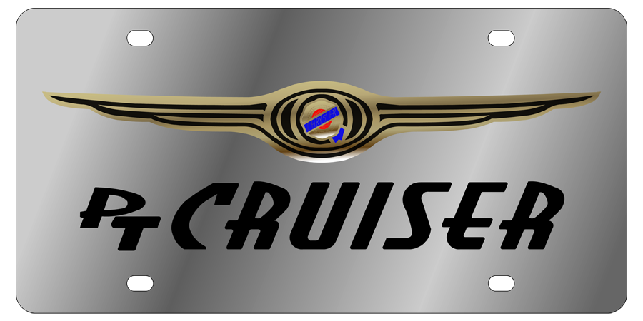 Chrysler PT Cruiser - Stainless Steel License Plate - PT Cruiser Word Gold Logo