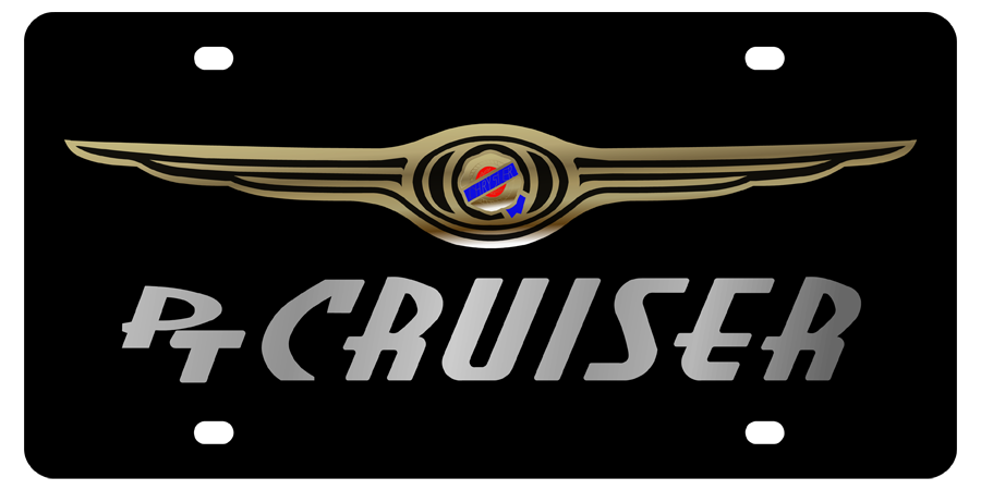Chrysler PT Cruiser Name License Plate - Chrome on Black - Official Licensed