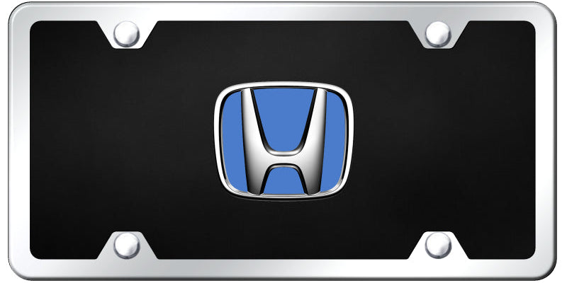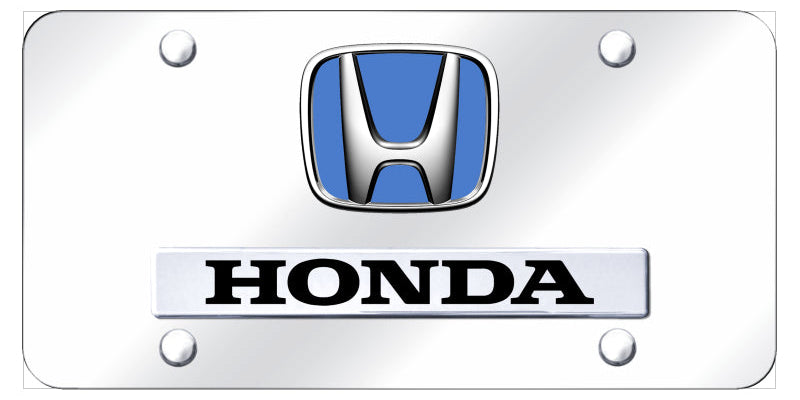 Dual Honda (Blue Fill) License Plate - Chrome on Mirrored - Official Licensed