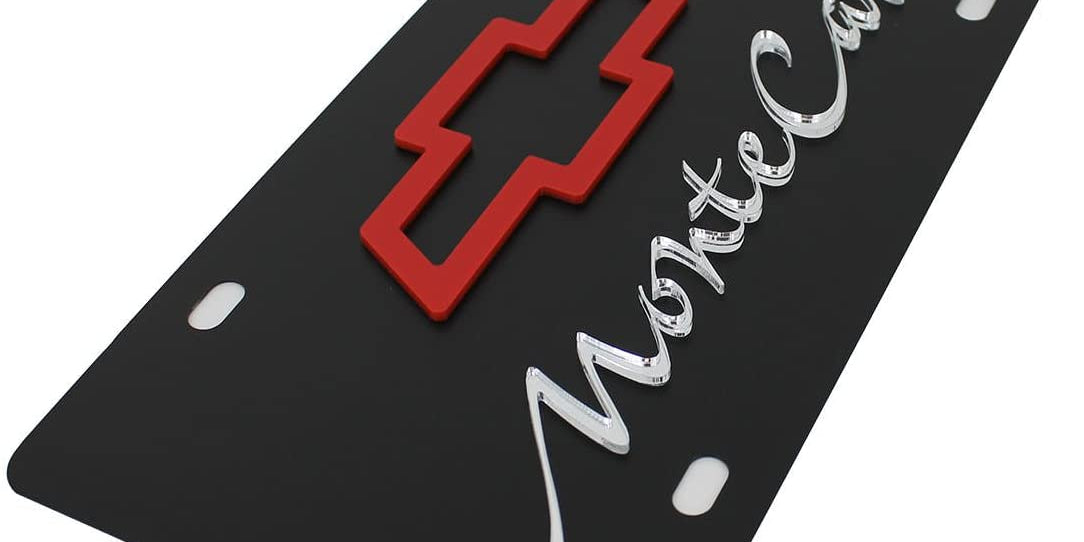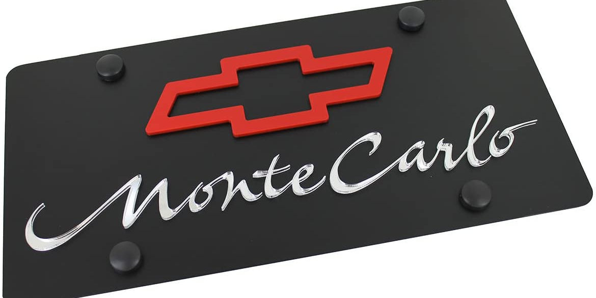 Chevrolet - Carbon Steel License Plate - Chevrolet Monte Carlo Logo / Word Red