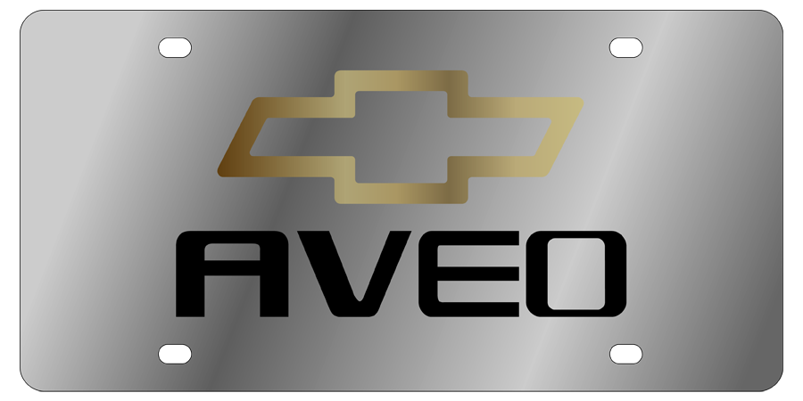Chevrolet Aveo - Stainless Steel License Plate - Aveo Gold Bowtie Logo