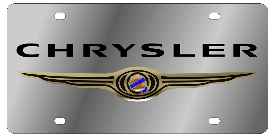 Chrysler - Stainless Steel License Plate - Chrysler Logo Gold