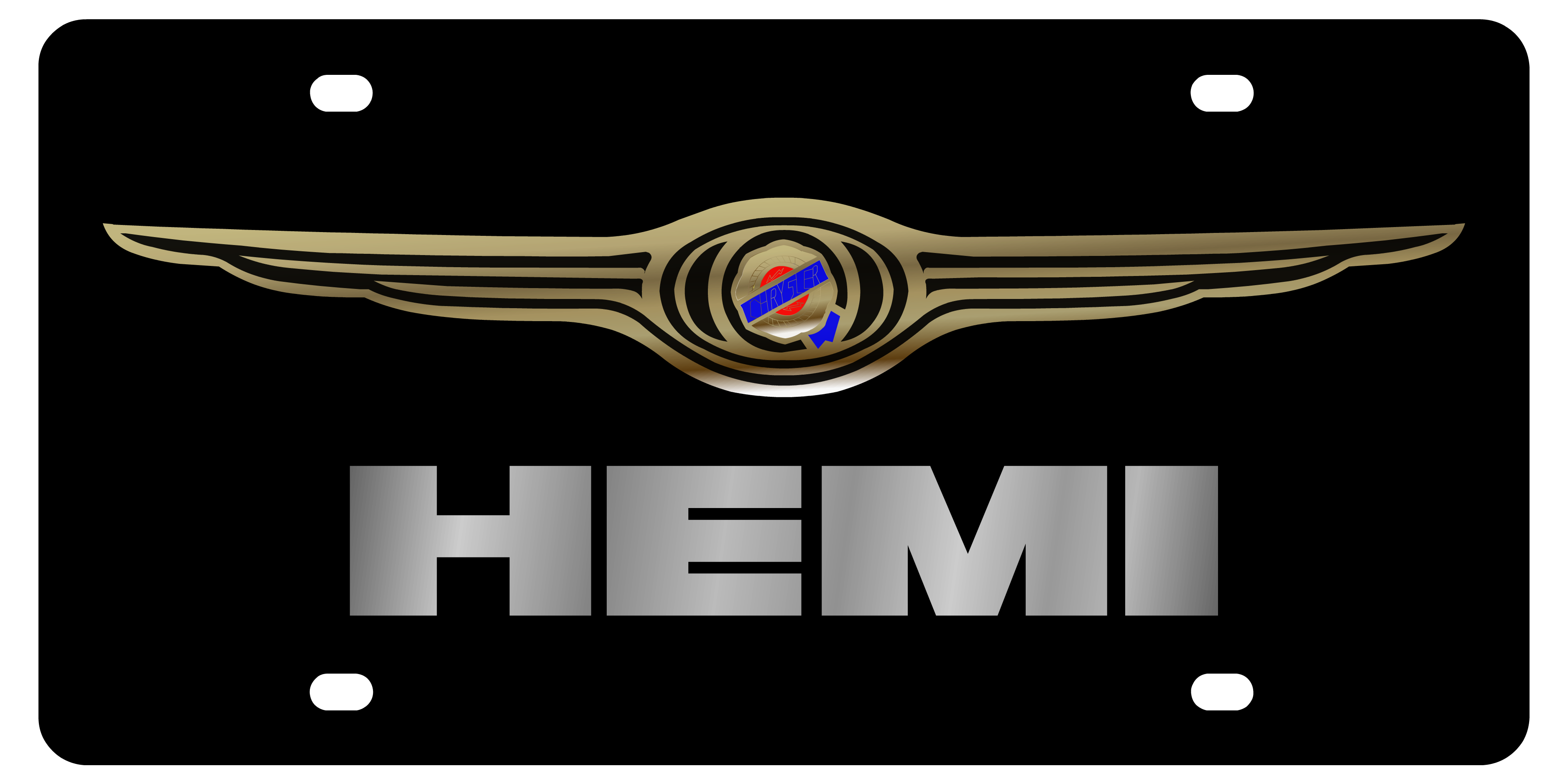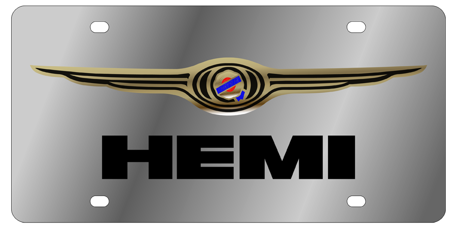 Chrysler HEMI - Stainless Steel License Plate - HEMI Gold Logo