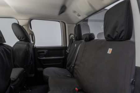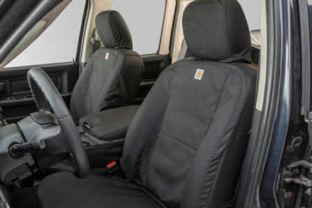 The workwear you need for your truck if you want maximum durability that matches the iconic look & material you know and love from Carhartt. The perfect collaboration of iconic Carhartt black styling with our custom seat cover patterns trusted since 1965! Custom fit for a relaxed fit, machine washable, airbag safe, and full seat coverage. Secures with in between seat pillows and straps to keep from moving getting in and out of the vehicle.