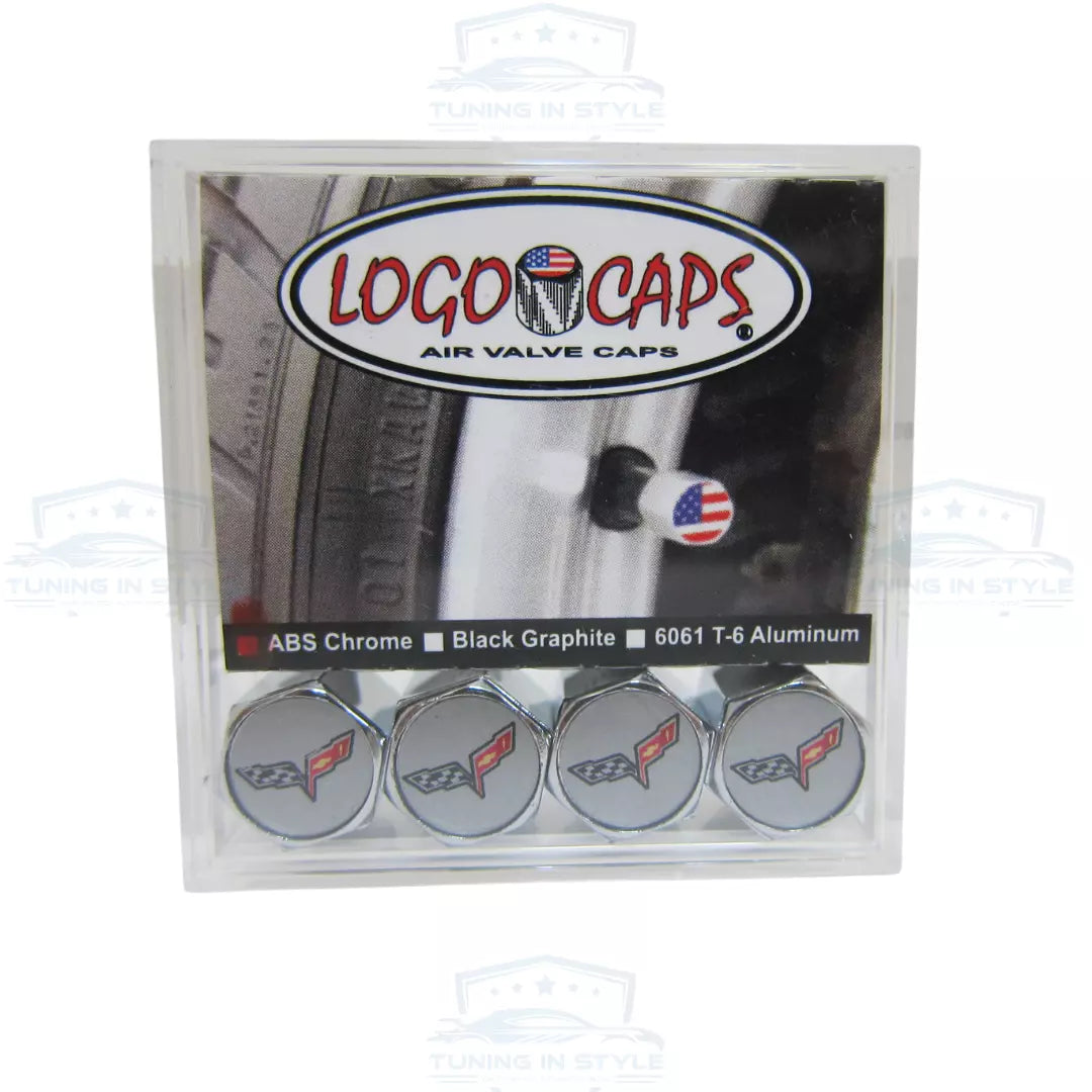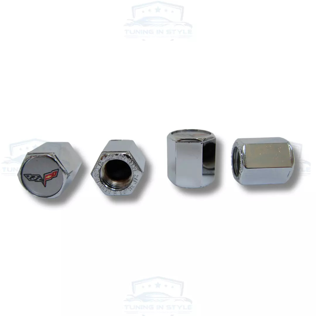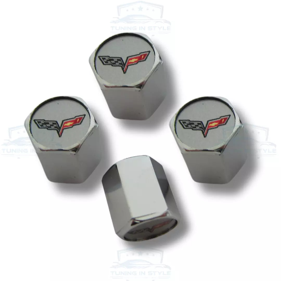 Chevrolet Corvette C6 Flag Logo ABS Chrome Tire Stem Valve Caps Official License