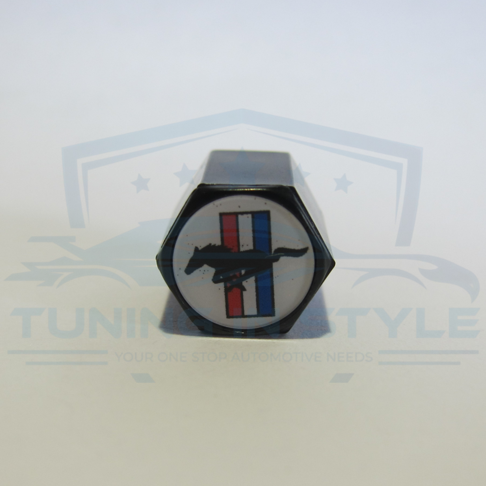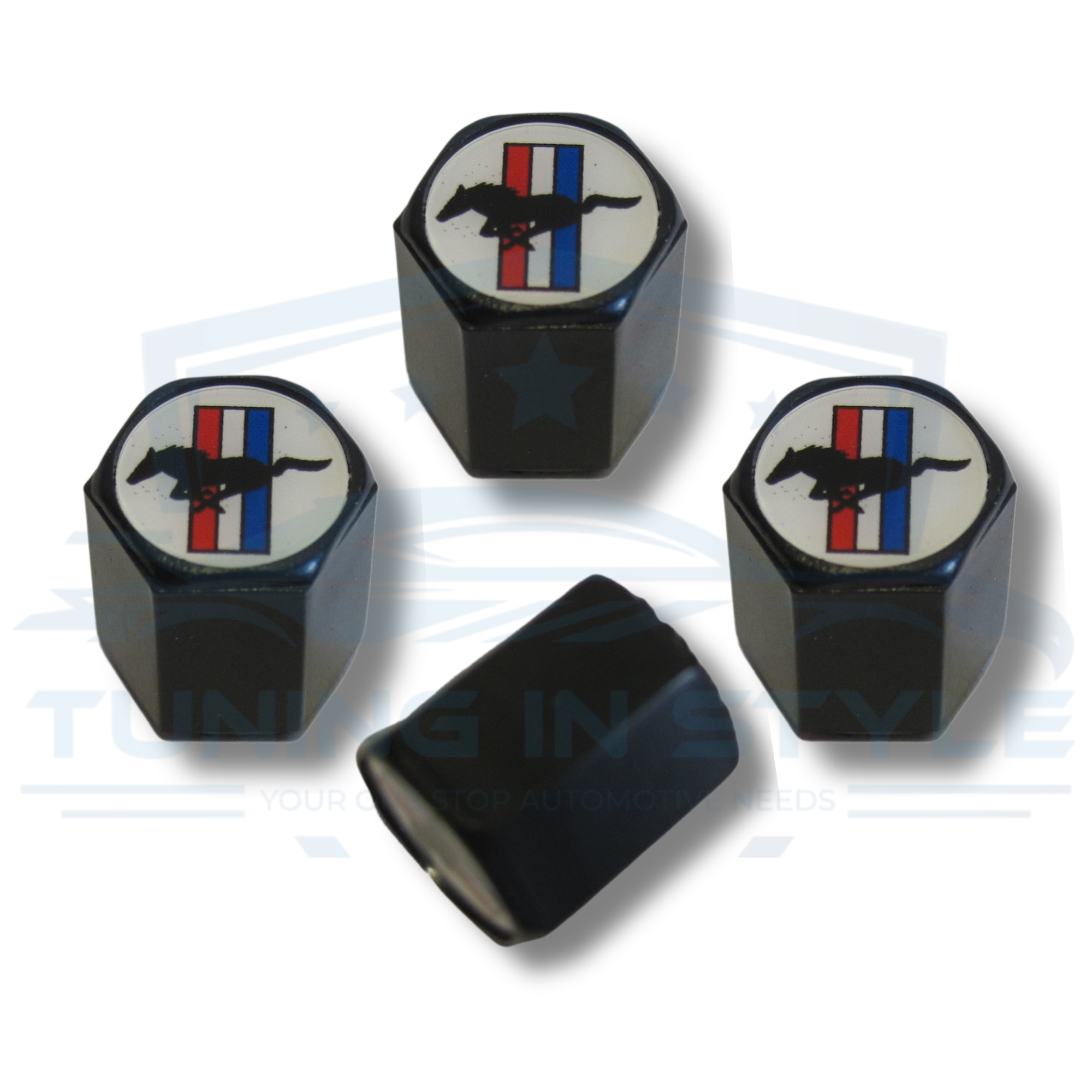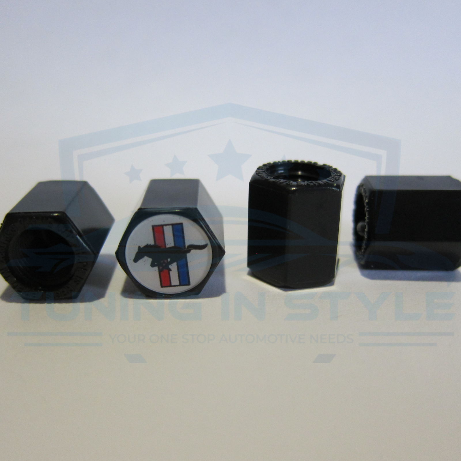 4pcs Ford Mustang Tri Bar Logo ABS Black Tire Stem Valve Caps Official Licensed