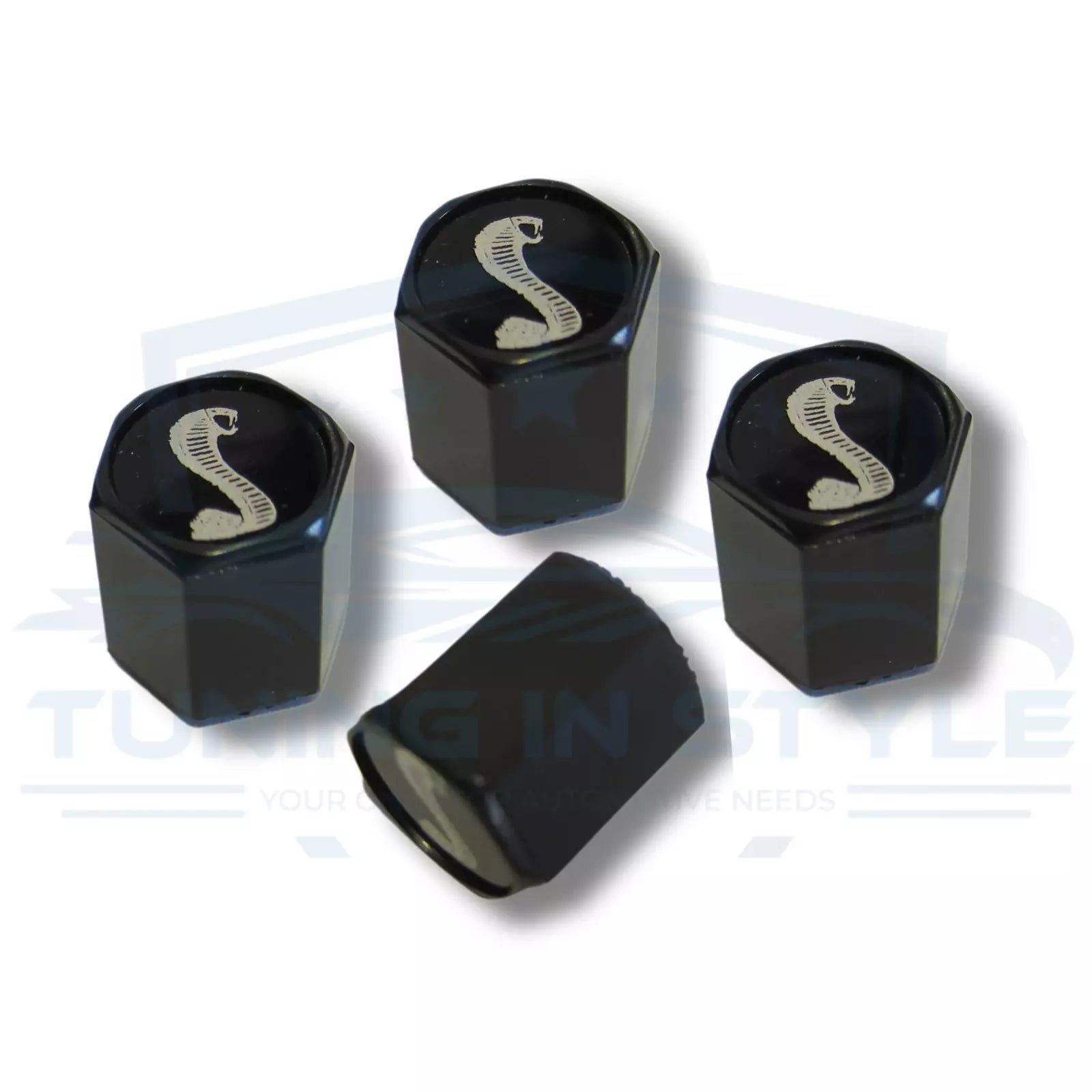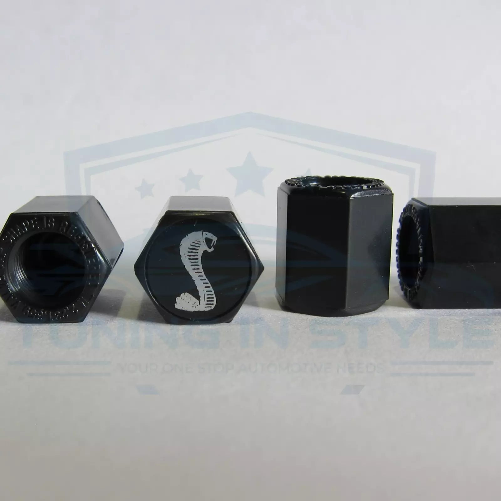 4pcs Ford Mustang Cobra Logo ABS Black Tire Stem Valve Caps Official Licensed