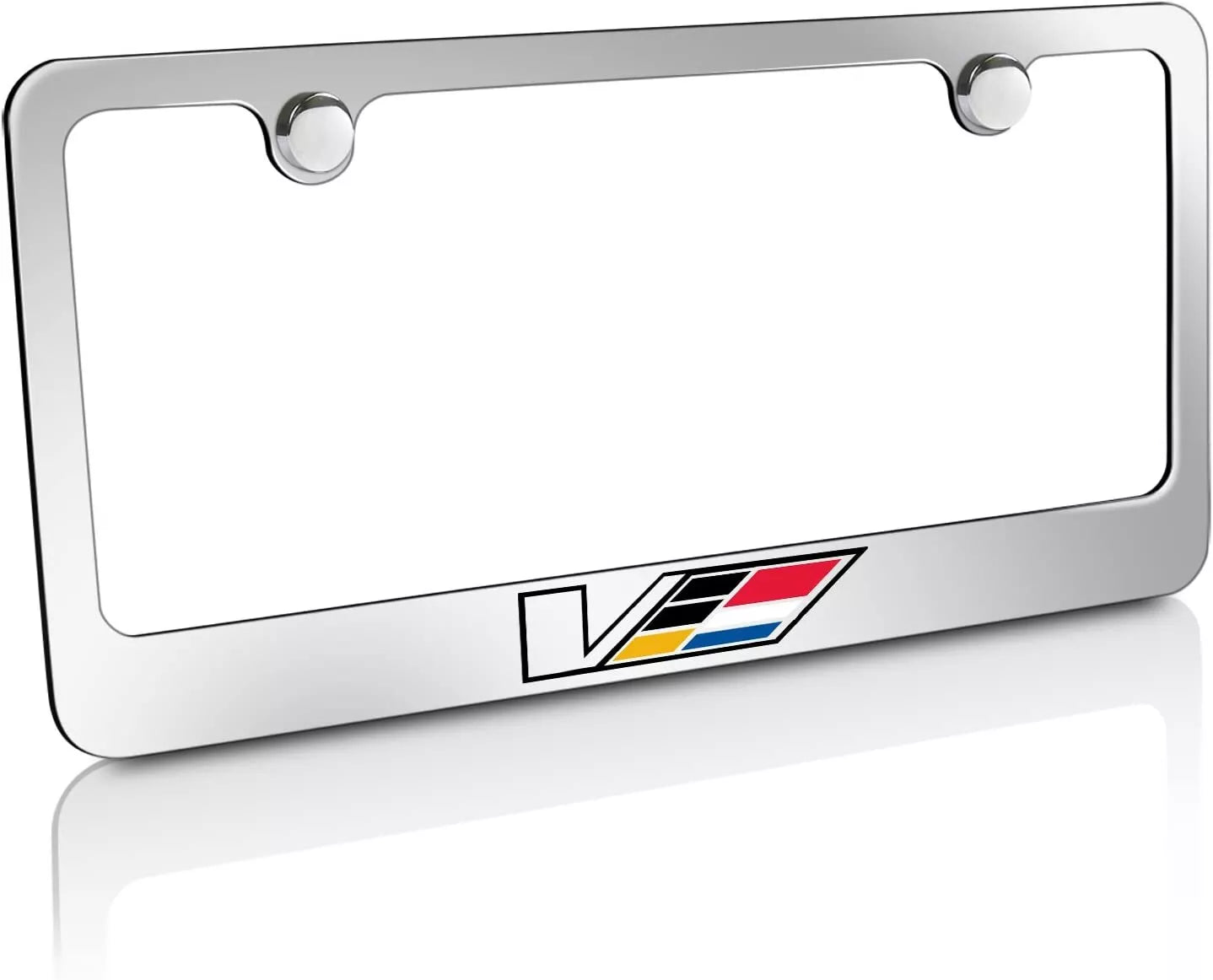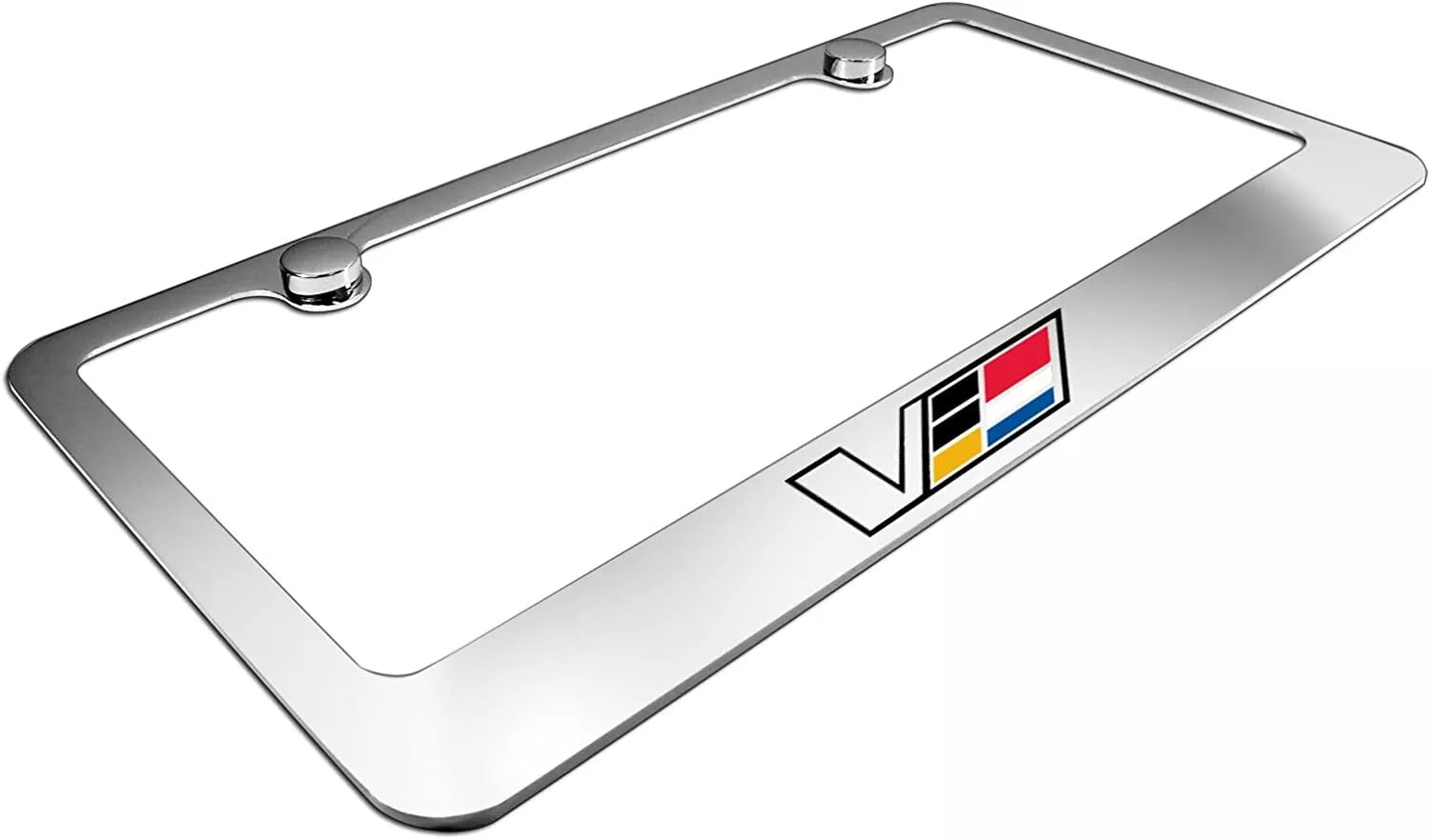 Cadillac V Logo Chrome Solid Brass License Plate Frame Official Licensed
