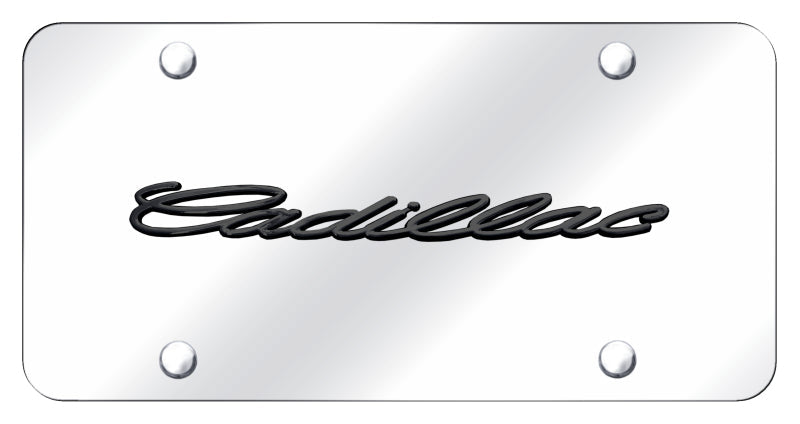 Cadillac OEM Name License Plate - Black Pearl on Mirrored - Official Licensed