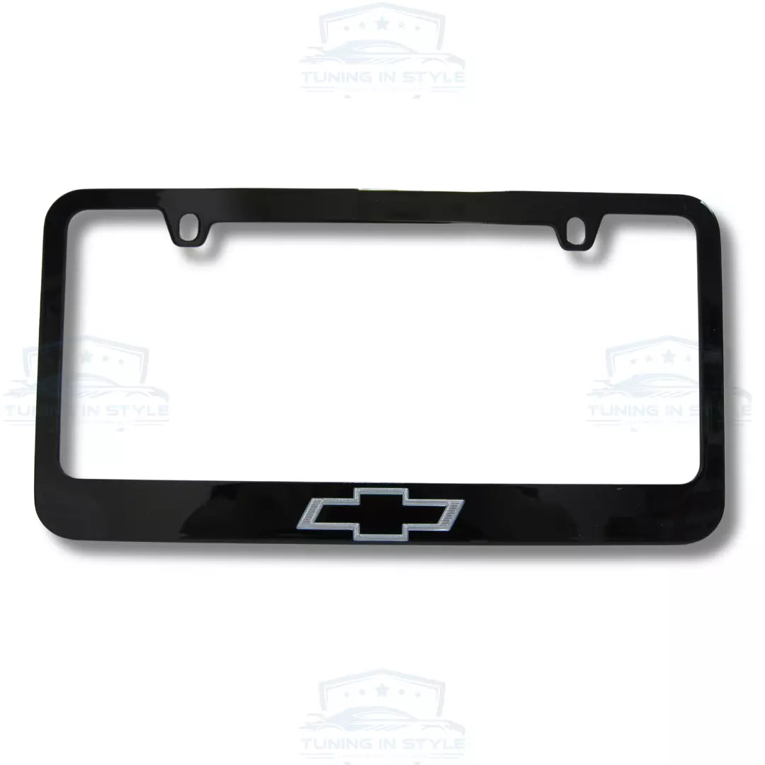 Chevrolet Bowtie Engraved Logo Black Zinc License Plate Frame Official Licensed