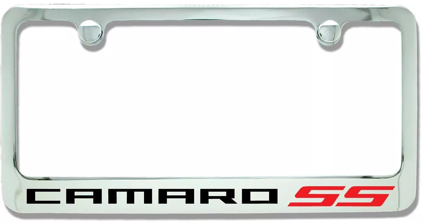 Chevrolet Camaro Red SS Logo Chrome Brass License Plate Frame Official Licensed