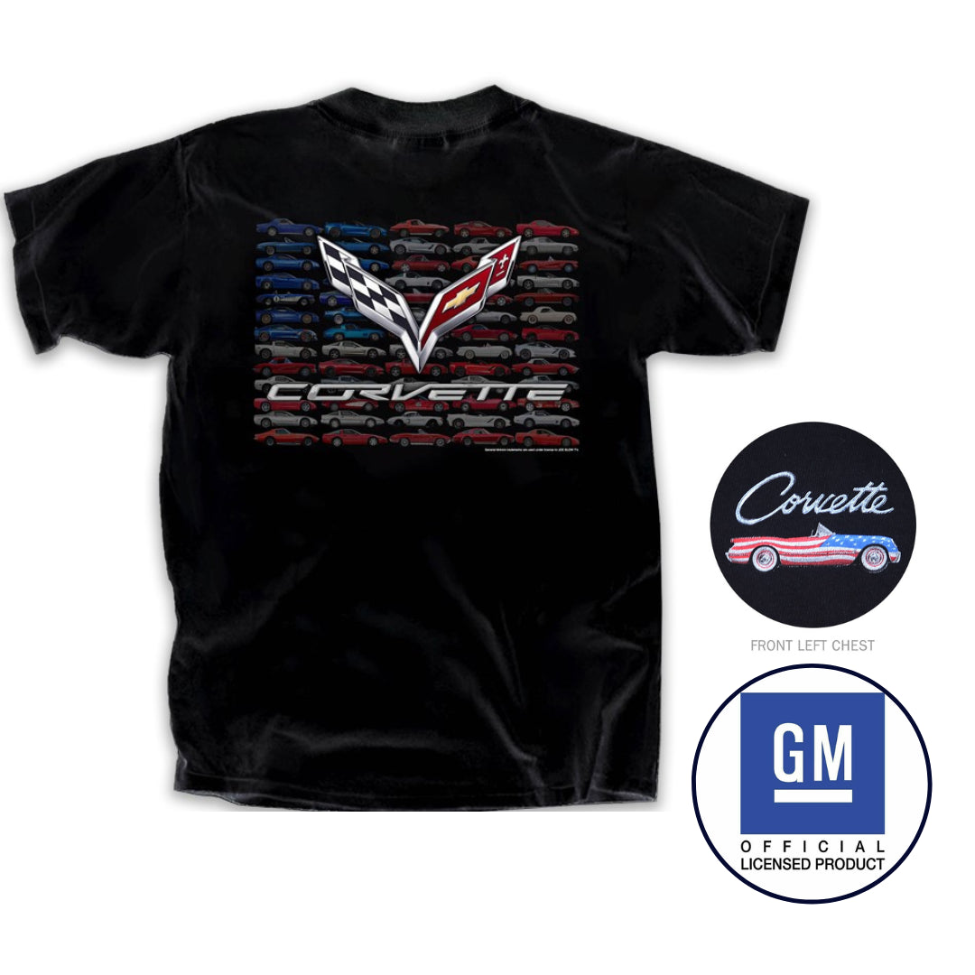 Chevrolet Corvette C7 Logo American Flag Graphic T-Shirt Black Official Licensed
