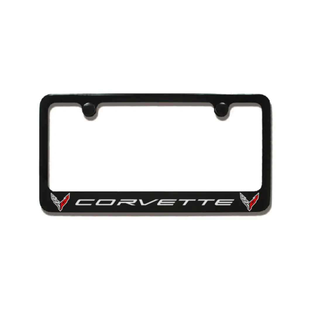 Chevrolet Corvette C8 Dual Logo Black License Plate Frame Official Licensed