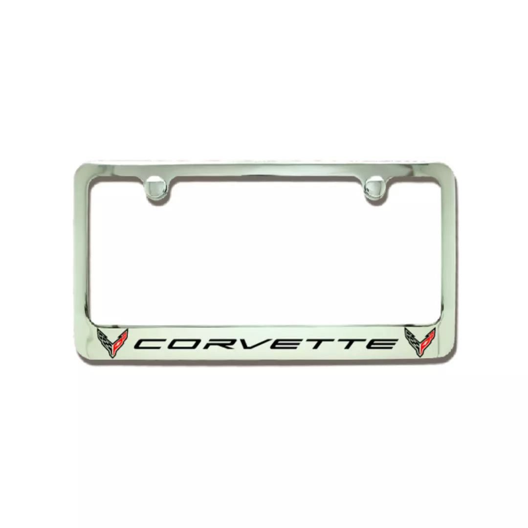 Chevrolet Corvette C8 Flag Dual Logo Chrome License Plate Frame Official License