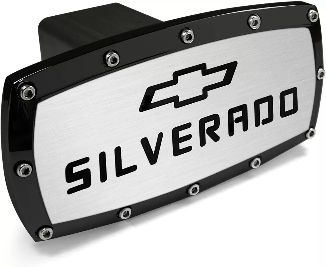 Chevrolet Silverado Engraved Black Aluminum Tow Hitch Cover Official Licensed