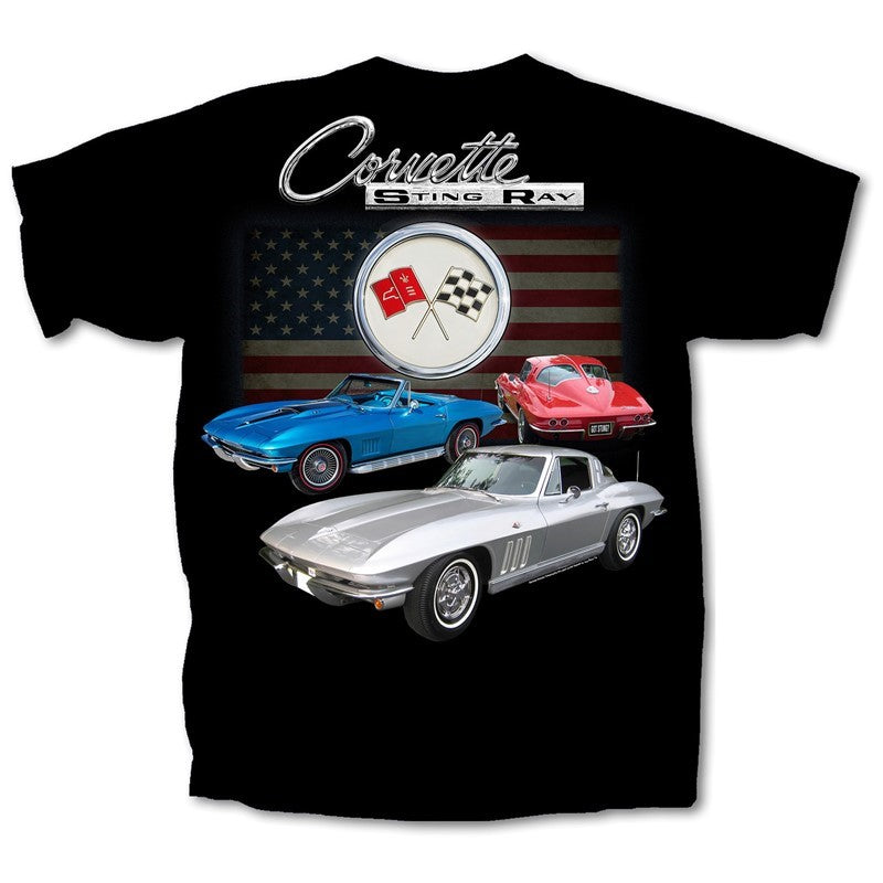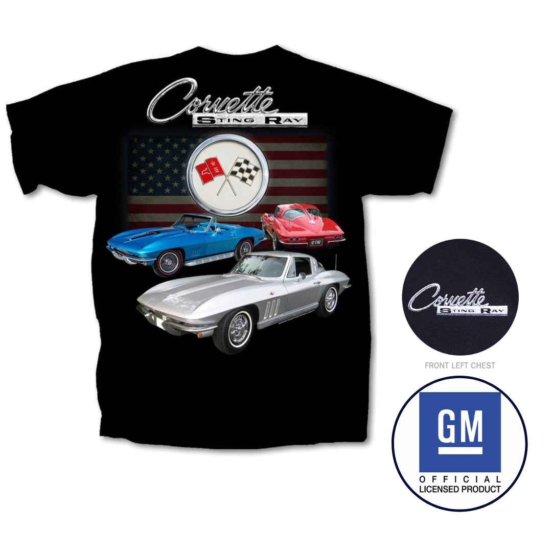 Chevy Corvette Flag Stingray Classic Car Graphic T-Shirt Black Official Licensed