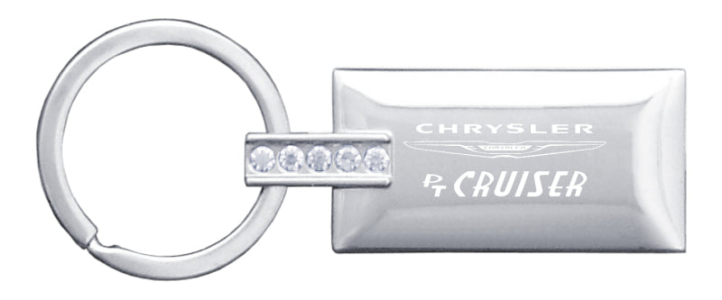 Chrysler PT Cruiser Jeweled Rectangular Key Chain Fob - Silver - Official Licensed