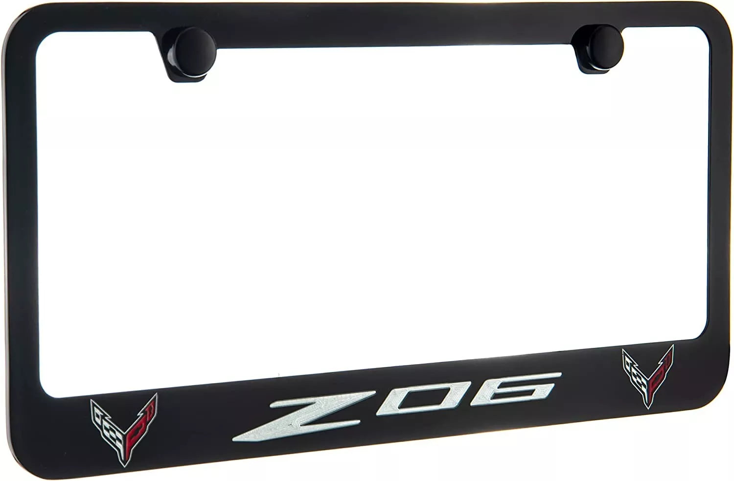 Corvette C8 Z06 2 Logo Black License Plate Frame Official Licensed