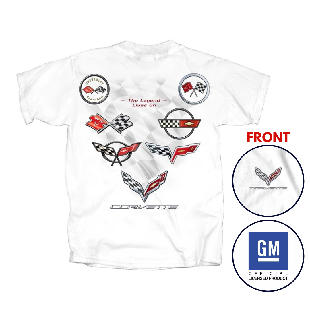Corvette Emblem Collection The Legend Lives On T-Shirt White Official Licensed