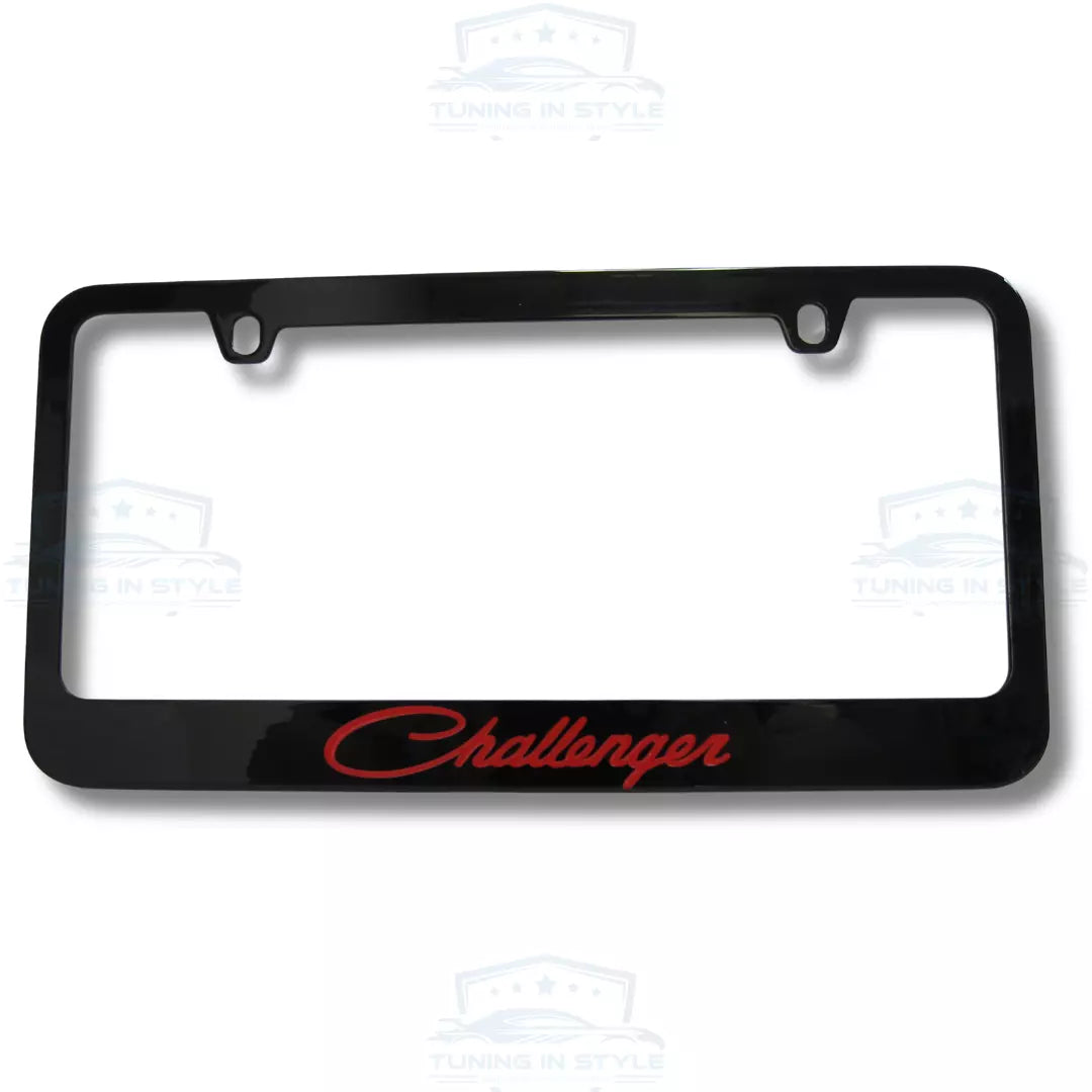 Dodge Challenger Red Logo Black Zinc Metal License Plate Frame Official Licensed