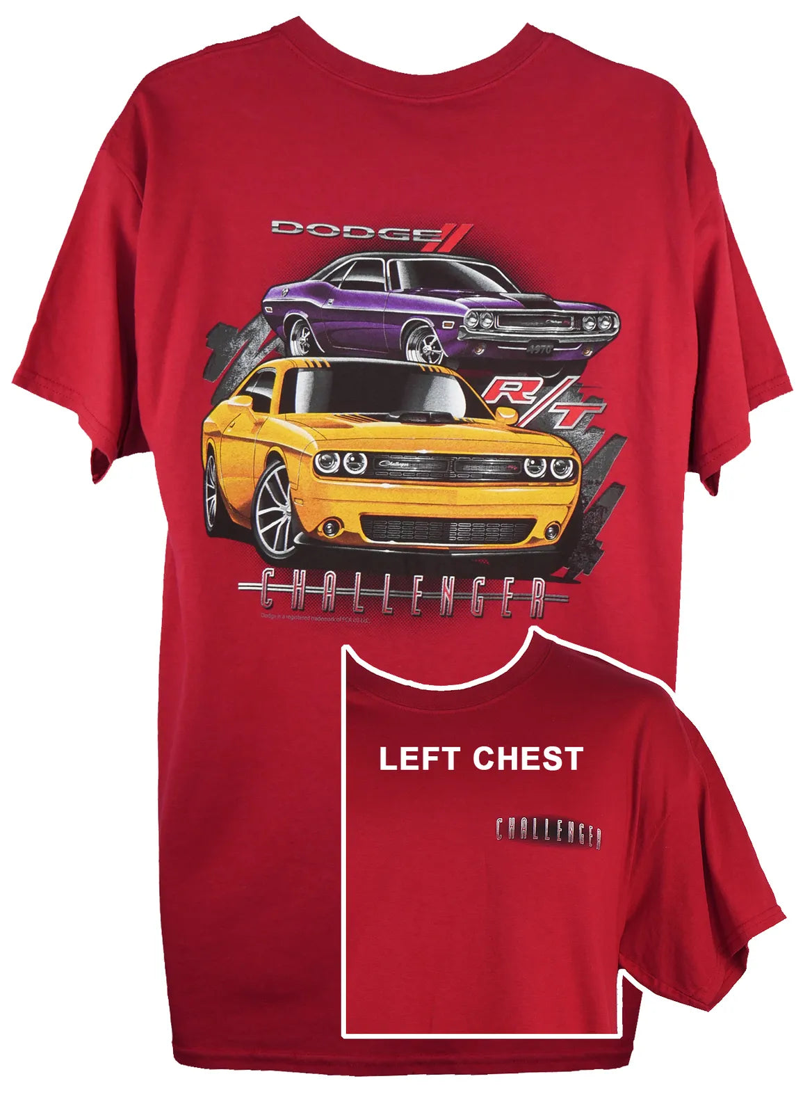 Dodge Challenger R/T Car Auto Graphic Cotton T-Shirt Red Official Licensed