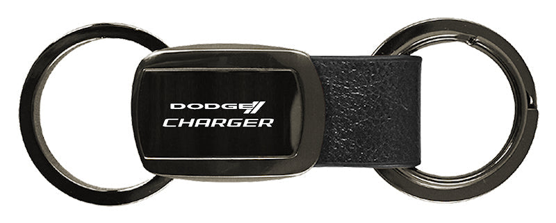 Dodge Charger Leather Tri-Ring Key Chain Fob - Gun Metal - Official Licensed